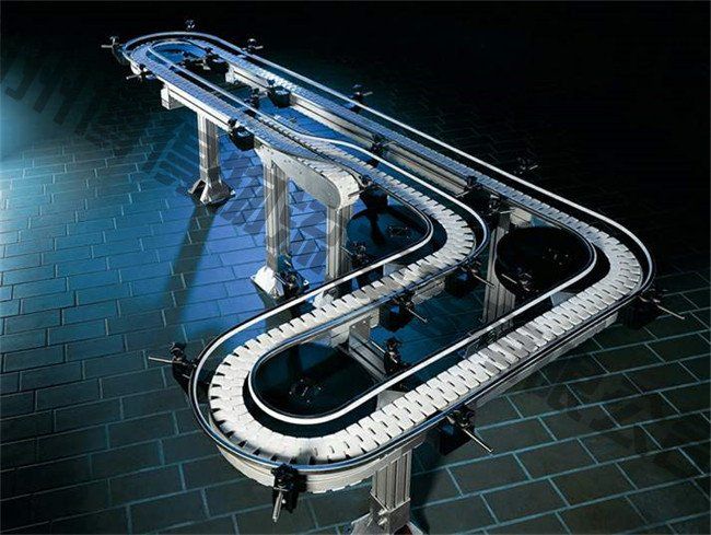 轉(zhuǎn)彎鏈板輸送機(jī)采用π型轉(zhuǎn)彎鏈板作為輸送載體,鏈板運(yùn)行在高分子聚甲醛制作的專用轉(zhuǎn)彎導(dǎo)軌里;或使用不銹鋼轉(zhuǎn)彎鏈板并使用帶磁性的轉(zhuǎn)彎導(dǎo)軌,使輸送鏈板始終運(yùn)行在專用導(dǎo)軌里面,具有運(yùn)行平穩(wěn),安裝方便的特點(diǎn)。